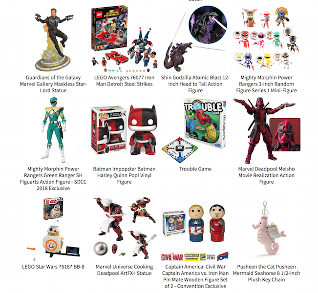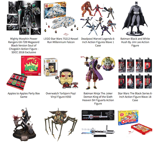 The Entertainment Earth festivities will kick off with extremely limited daily doorbusters of the year’s best-selling items like the Marvel Legends Thor, Rocket Raccoon, & Groot – TRU Exclusive and Mighty Morphin Power Rangers Legacy Green Ranger Helmet. There will also be amazing giveaways! Enter for a chance to win a DC Collectibles’ DC Artists Alley Batman by Chris Uminga Matte Black & Gold Variant Vinyl Figure – SDCC 2018 Exclusive or the original prototypes of two Funko 2018 Convention Exclusive Pop! Vinyl Figures: Hellboy in Suit and Looney Tunes Playboy Penguin.