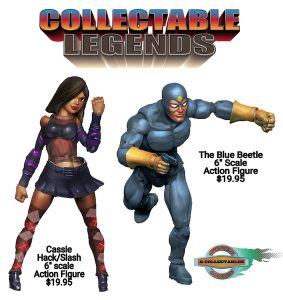 Introducing our first toyline and 2 figure line up. Collectable Legends a 6″ action figure line featuring licensed characters from comics, movies, games, anime and other pop culture. The first series will include Cassie from Hack/Slash and The Blue Beetle (Dan Garret) from Fox’s Comics. This line features high levels of detail mixed with high levels of articulation and interchangeable parts. This line is due to ship in the next few months and will be making it’s way into retail stores as well.